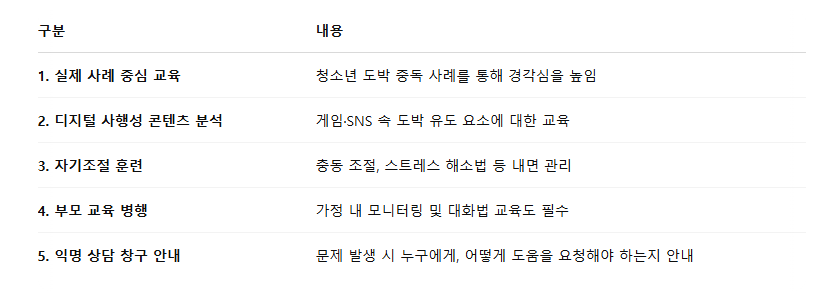 ✅ 청소년 도박 예방을 위한 실질적인 교육 방향
