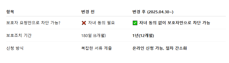 ❌ 보호조치 만료 안내는 별도로 주어지지 않음