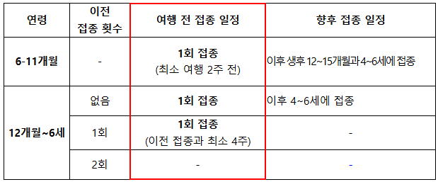 출국 4-6주 전 MMR 백신 2회 접종(최소 4주 간격)