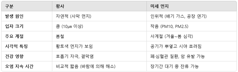 ✅ 황사: KF80 이상 마스크 착용, 귀가 후 세안, 창문 닫기